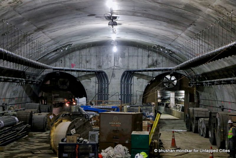 We began our tour at the 63rd and Lexington Avenue station extension, a spot we had visited before, and the progress was evident right away. The dramatic caverns we hiked through just two years ago have now been shaped into a robust subway system, with train tracks in most tunnels, gigantic ventilation ducts floating above the stations, and Signal rooms equipped with the Communications-Based Train Control (CBTC) system.