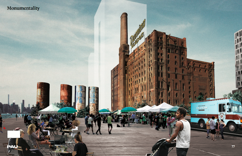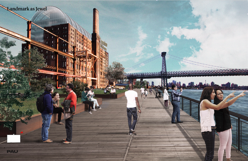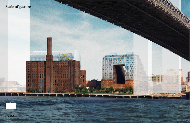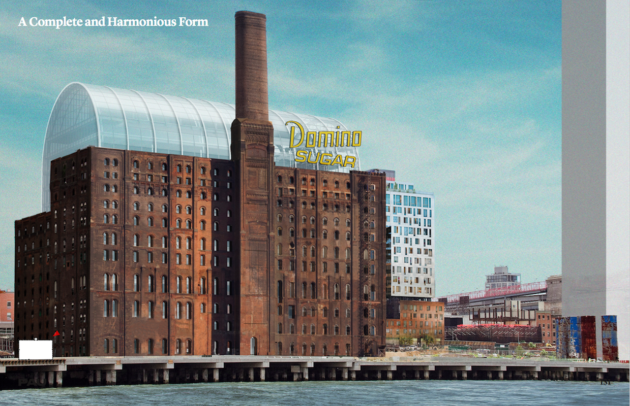 New renderings of the Domino Sugar Factory give us a deeper look into the interior space and perhaps more interestingly, what looks like a glass dome. The recent design of the Williamsburg space is being transformed by Vishaan Chakrabarti‘s Practice for Architecture and Urbanism (PAU), replacing the Beyer Blinder Belle’s Landmarks-approved design.