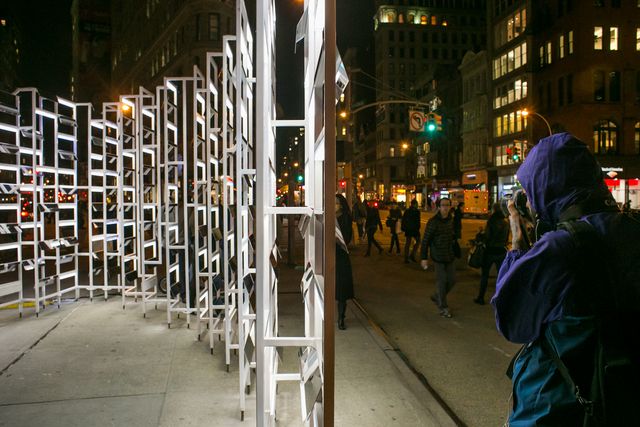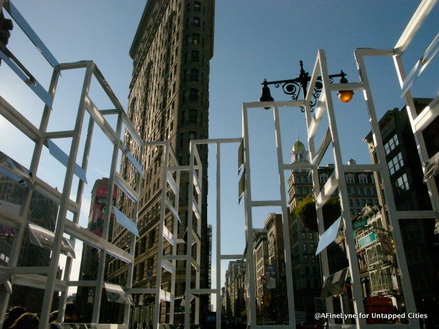 Designers were given the challenge of creating an installation for the Plaza facing the Flatiron Building that the public could interact with not only in the daylight hours, but also at night. Seven artists and architectural firms were invited to submit and the jury included representatives from the Flatiron 23rd Street Partnership and Van Alen Institute’s Board of Trustees.