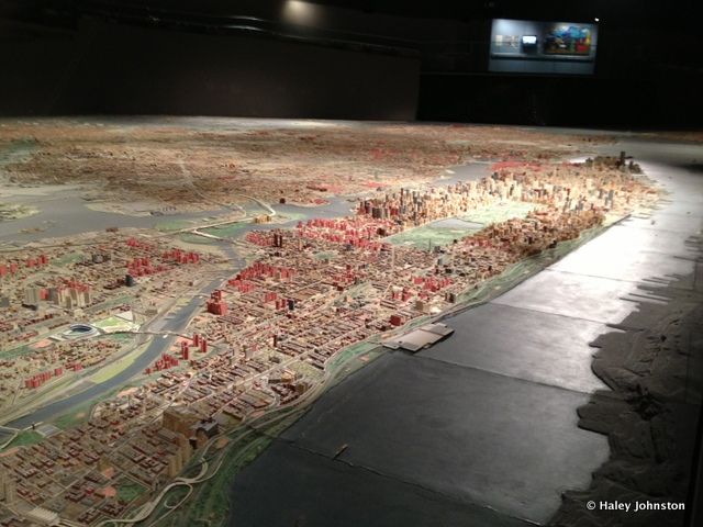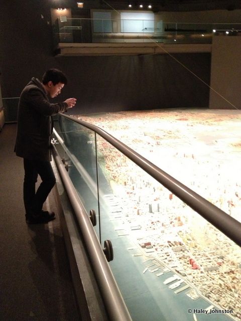 The Panorama of the City of New York at the Queens Museum of Art is the only place in the city where you can feel like Godzilla for a little while. The Panorama is a scale model of all five boroughs, where an inch in the model is equal to a hundred feet in the actual city, allowing one to cover miles of sightseeing in only a few steps. To give you an idea of the scale, the Empire State Building is 15 inches tall. All 321 square miles of New York City are condensed into 9,335 square feet. Every building constructed before 1992 on every borough is represented in the model. It is the world’s largest architectural model. It’s not the people that are the size of ants here – it’s the buildings.