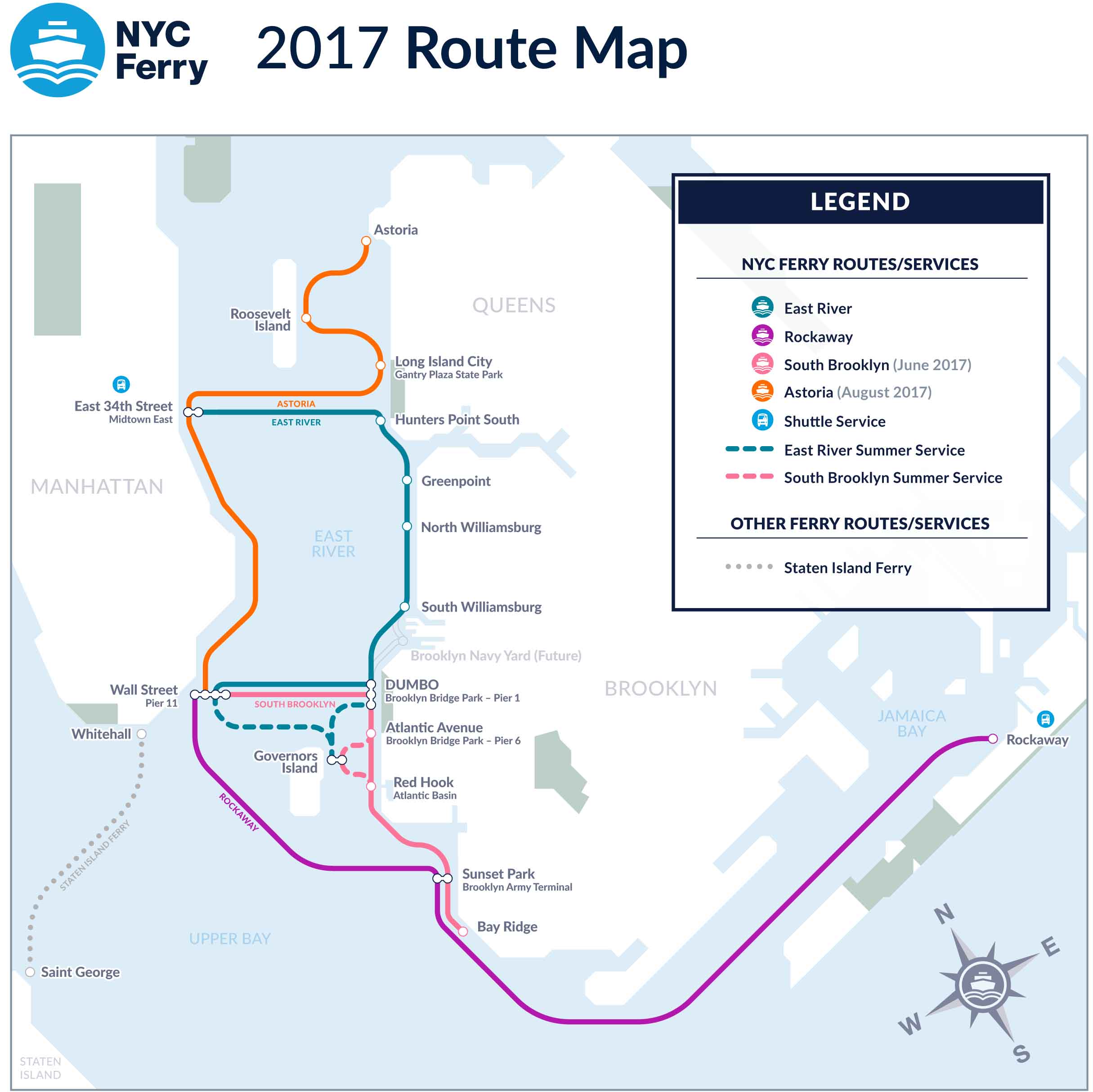 For some time now, we’ve been following the progress of the NYC Ferry, New York City’s expanded ferry system that connects waterfront communities in the Bronx, Manhattan, Queens and Brooklyn. Since its launch in May 2017, the system has provided a new, affordable way to travel, and recently welcomed its 2 millionth rider aboard. Now, it’s the topic of a panel discussion, taking place at the New York Transit Museum on Tuesday, November 14, 2017. Entitled From Shore to Shore: New York Via NYC Ferry, the talk will focus on how development and the need for transportation influence each other, in addition to the planning process that allowed the NYC Ferry to flourish along 60 nautical miles of waterways.