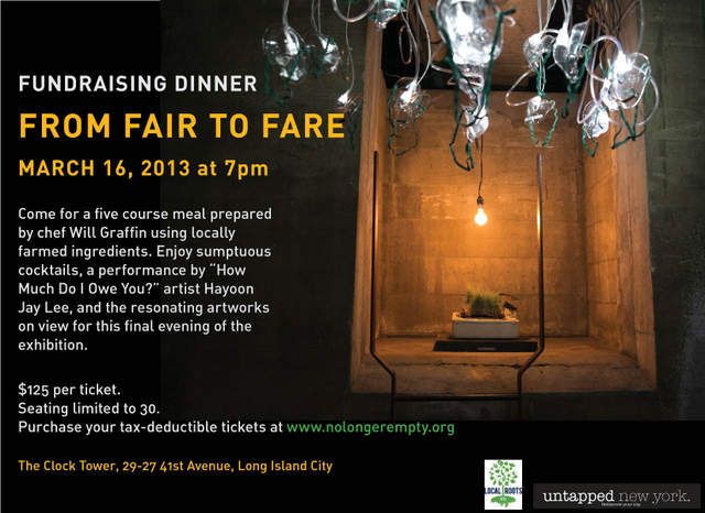 The No Longer Empty Dinner will take place on Saturday, March 16 at 7:30 p.m. The event is located in the Clock Tower at 29-27 41st Avenue, in Queens, NY. Tickets cost $125 and can be purchased here.