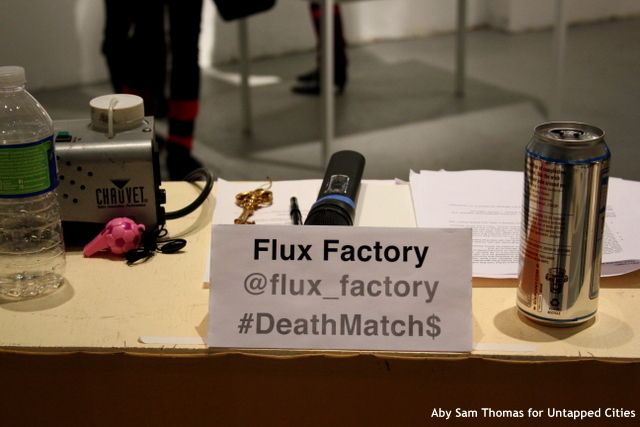 It may have been freezing outside, but the mood was certainly getting fiery in the last edition of Death Match, held last Thursday at the “No Longer Empty: How Much Do I Owe You?” exhibition space in The Clock Tower at Long Island City. While I did know that this was a debate in which three experts would battle it out over the issue of arts funding, I didn’t realize that the audience would be in on this game, making their presence felt through opinionated hoots, angry whistles and an assortment of other sprightly noisemakers.