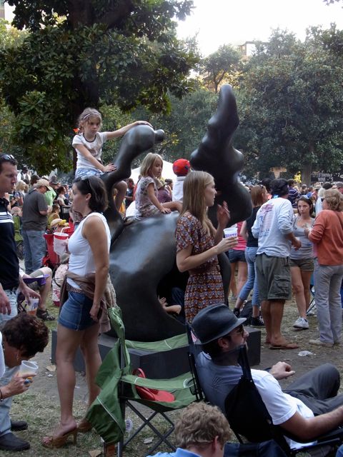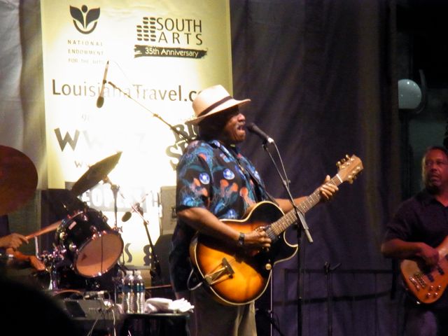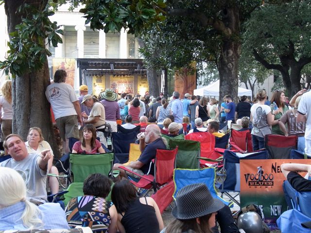 This past weekend was the 4th annual Crescent City Blues and BBQ Festival. The festival is run by the New Orleans Jazz & Heritage Foundation, the same organization that runs Jazz Fest (officially known as the Jazz and Heritage Festival). The Blues and BBQ Fest is held in Lafayette Park (unofficially known to some locals as “that park between St. Charles and Camp near Poydras” ). Lafayette Park is a great venue. It’s a grassy, tree-filled park in the middle of the CBD. Very refreshing.