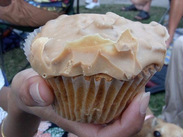 I supplemented that with a praline cupcake from Loretta’s ”” this is a nutty, yellow cupcake with praline smeared on top. Highly recommended.