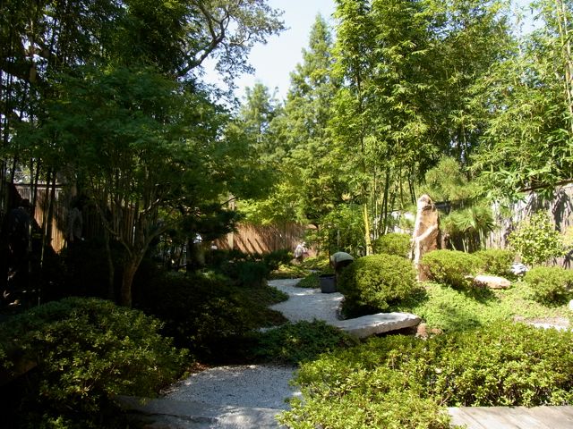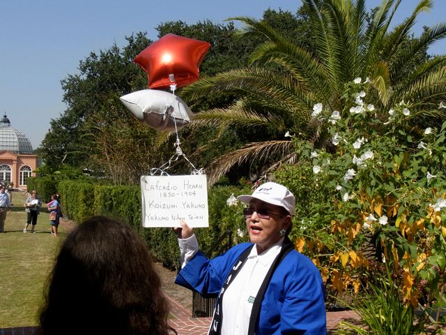 But this post isn’t about the WPA. Nor is it about NOMA or City Park ”” it’s about a small part of the gardens. Tucked away in a corner of the Botanical Garden is the Yakumo Nihon Teien, a small Japanese garden run by the local Japanese Garden Society. The garden is named after Lafcadio Hearn, a famous resident of New Orleans in the late 19th century. As a writer, he helped contribute to the exotic image of New Orleans. When he finished here, he went to Japan as a writer for Harper’s and ended up becoming a Japanese citizen, taking the name Koizumi Yakumo when he did. The garden is in part sponsored by Matsue, the city where he settled in Japan.