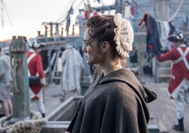 New York City is shown several times in the television series, as it’s where Woodhull goes to scout out British military activity in the city. As correctly shown in the show, part of the colonial city was a hotbed for prostitution (above), while prisoners were held in prison ships, like the one in which Selah Strong was held captive (below). There were also numerous prisons on land converted from sugar factories, known as sugar prisons. Also shown in the show is the townhouse that serves as the headquarters for British Major John André, Kings College (later Columbia University), and many scenes of New York harbor.