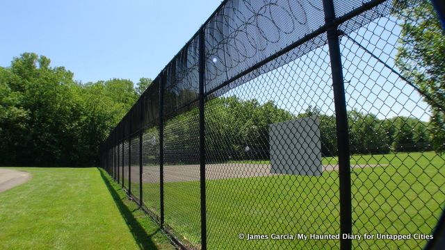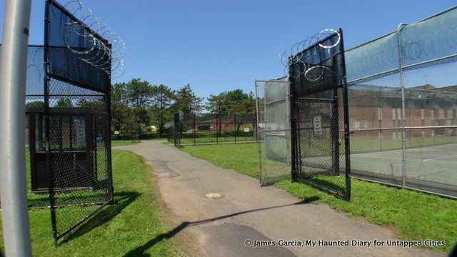 In the background you can also see glimpses of Lake Tappan, which borders the facility. It appears the actual lake scene, where the inmates are playing in the water after making their escape through the open fence, was likely filmed somewhere else as the shoreline is less rocky than in the show.