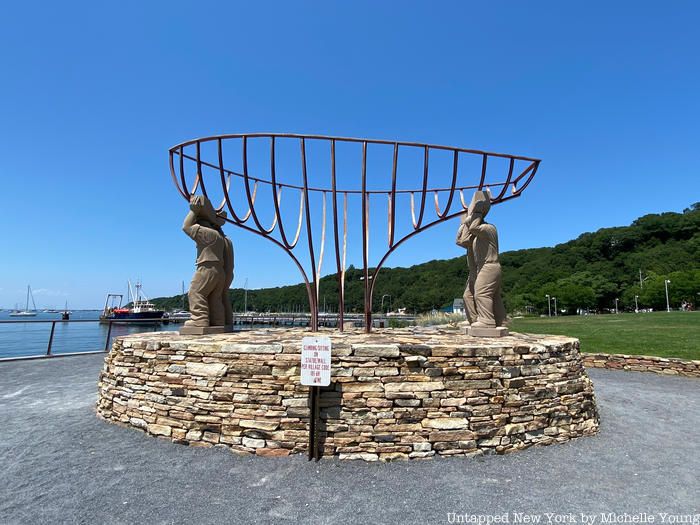 A 350-foot pier was opened in May 2002, which served as the home base of the Seawolf, a marine research vessel used by Stony Brook University. A Promenade with a sand and gravel walkway was opened in 2004, and the historic Chandlery Building underwent exterior reconstruction ending in 2006. The Landmark Sculpture in the park, unveiled in October 2004, depicts four rugged seamen carrying the bones of a ship, serving as a tribute to the area’s shipbuilders.