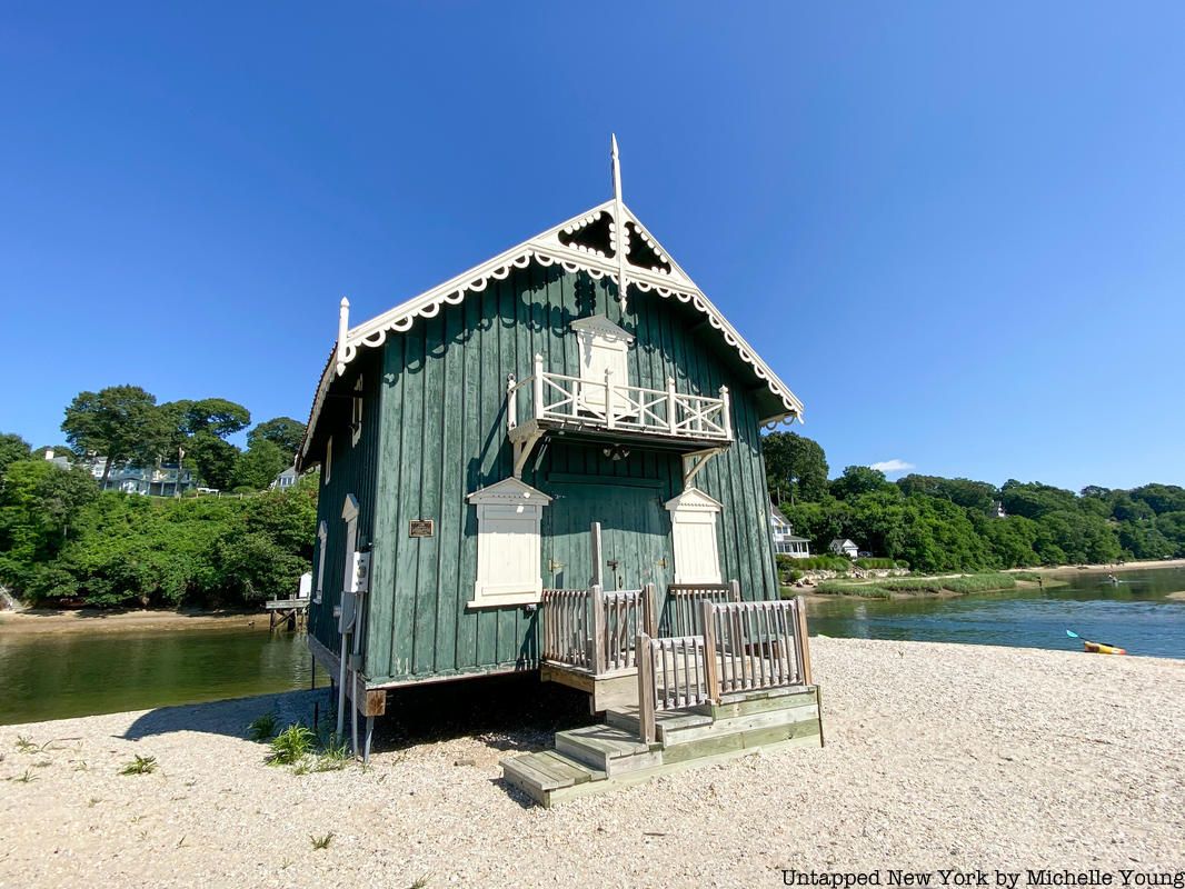 The Gamecock Cottage is a historic Gothic Revival-style building built in around 1876, probably as a safe haven for yachtsmen, according to the Three Village Community Trust, which stewards the site. The one-and-half-story building, which used to be rented out in the summer, is listed on the National Register of Historic Places and is situated on the West Meadow Wetlands Reserve and includes a front-gabled roof with bright-white windows. The cottage has been owned by the Town of Brookhaven for over 60 years, and it is often considered “the most painted and photographed structure in the Three Villages.”