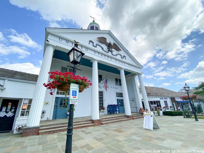 The Stony Brook Village Center is a historic commercial center created by philanthropist Ward Melville as a “living Colonial Williamsburg.” The village center was built in the style of a traditional New England village in 1941 with clapboard buildings and quaint stores. Many existing shops were moved together into a crescent shape in a design similar to colonial Williamsburg. The center is home to the Stony Brook Post Office (whose eagle flaps its wings at the beginning of each hour), as well as a number of restaurants, gift shops, clothing stores, and professional services.