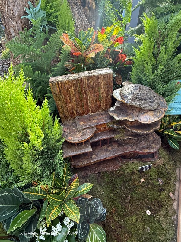 "Are those mushrooms, daddy?" asked the little boy to my left. Yes, indeed, the Guggenheim has been recreated with shelf fungus. "I think Frank Lloyd Wright would approve," says Dolan, referring to the Guggenheim's famously irascible architect. The Guggenheim is both a New York City landmark and a UNESCO World Heritage Site.