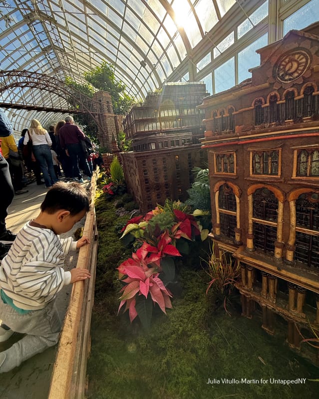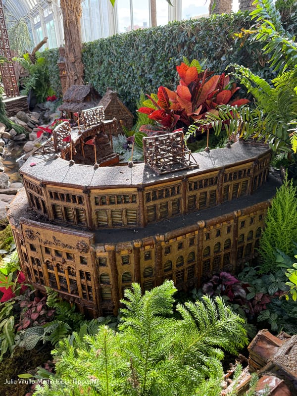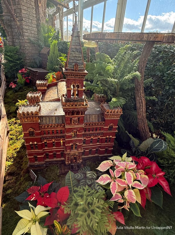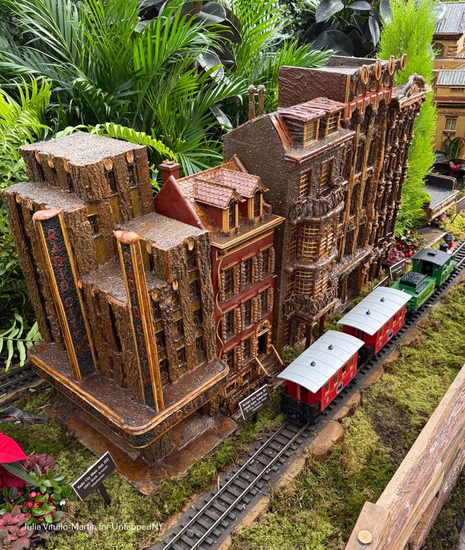 There's nothing on the planet quite like the New York Botanical Garden's Holiday Train Show, which replicates our city's most treasured buildings, recreating them as botanical masterpieces. Limestone, marble, iron, wood, glass, and steel are replaced with evergreens, twigs, hollies, moss, pine cones, bark, and tree roots. Among and between the nearly 200 buildings, trains chug and glide on 1,200 feet of track, reminding us that New York was once a great train city. And now, in the Bronx, it is once again.