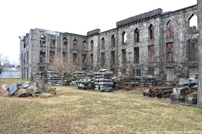 The Renwick building closed by the 1950s and sat abandoned for decades. In 1972, the structure was added to the National Register of Historic Places. Four years later it earned landmark designation from the New York City Landmarks Preservation Commission. Despite this designation and efforts to stabilize the structure in the 1990s, the ruin continued to deteriorate with the north wing collapsing in a snowstorm in 2007. Today you will find a fence around the property and various pieces of metal scaffolding to support parts of the structure.