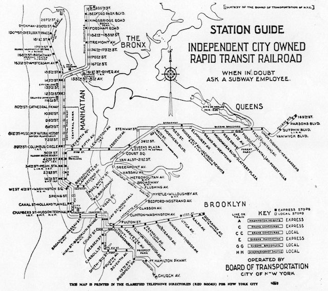 In an effort to expose NYC’s abandoned subway stations and incomplete platforms and levels, we’re taking you inside the Hoyt-Schermerhorn stop in Brooklyn. The station opened in 1936 as part of the IND Line and served the Fulton Street Line, which originally had local and express trains. Manhattan-bound express trains stopped at Jay Street-Borough Hall and continued north, as you can see on the map below. Northbound local trains were set to terminate at Court Street (today the site of the Transit Museum), but that station was closed in 1946 due to low ridership. After that, only express trains ran through the station, making the outer platforms obsolete. They’ve been disused ever since. Today, the A, C and G trains run on the Hoyt-Schermerhorn station’s inner platforms. While waiting for those trains, you can clearly see the abandoned platforms across the way.