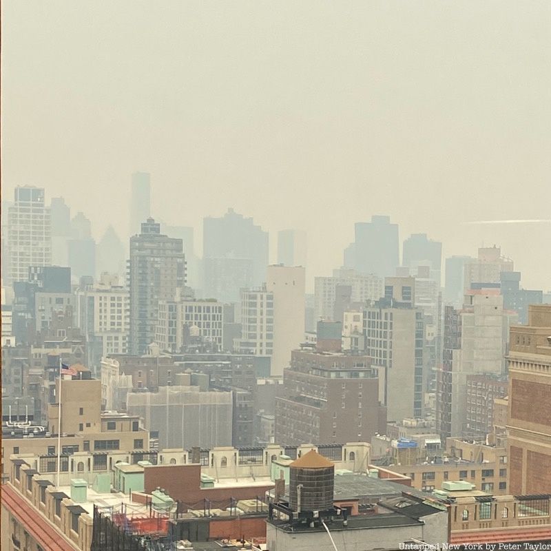 The haze is expected to stick around through the weekend, through it should improve each day. You can check the air quality index on the New York State Department of Environmental Conservation website or their Twitter account and stay up to date with notifications from NYC’s official emergency notification system here. The NYC Department of Health and Mental Hygiene has helpful tips on how to keep yourself, your family, and your pets safe while the air quality remains at unhealthy levels.