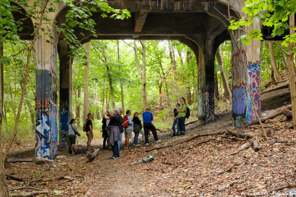 Hike through graffiti-covered tunnels and lush trees along an abandoned rail line that the advocates are proposing to transform into a public park!