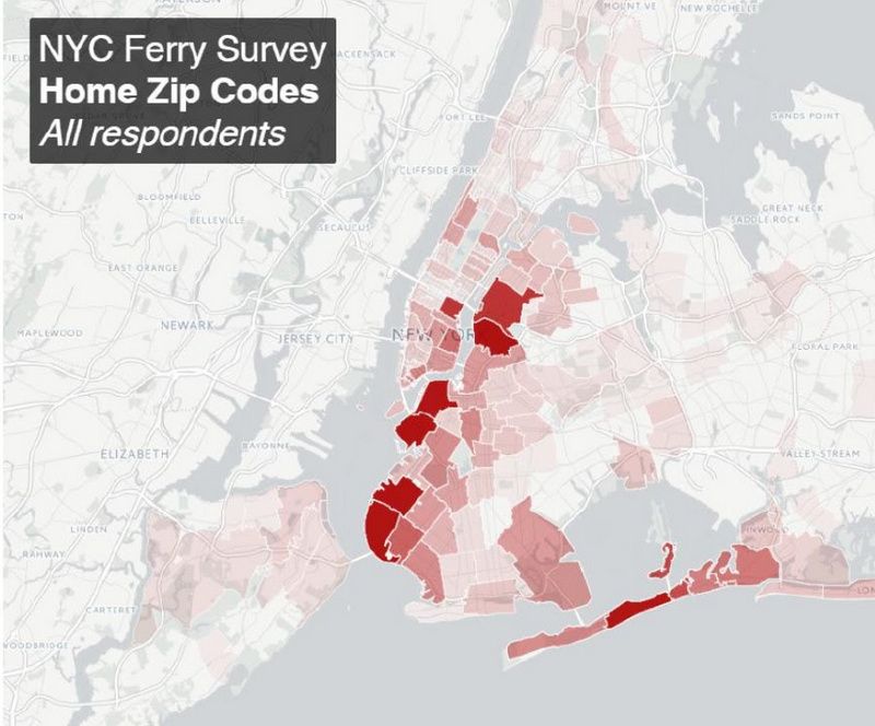 The survey found that across all three active routes (East River, South Brooklyn, and Rockaway), 93% of riders gave NYC Ferry a customer satisfaction rating of seven or higher on a ten-point scale, with 66% giving the highest possible score. Findings also show that 87% of riders are New York City residents, with 85% of weekend riders and 90% of peak-hour riders residing in the five boroughs.