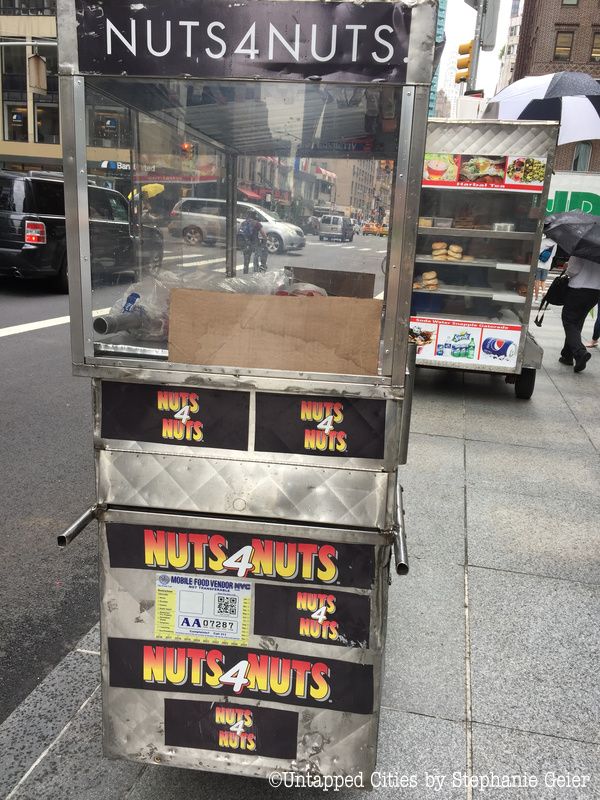 The New York Times adds some more context, explaining that the Argentines “trace the origins” of the nut vendors to an Argentine man named Jorge Aguirre, who started selling them in the mid-1980s and “gradually enlisted” Argentine men to help him. One of them was Alejandro Rad, who began selling honey-roasted nuts on his own when he came to the U.S. in 1989. Over time, he “began with one pushcart and grew steadily.” As more Argentinian immigrants arrived here, they naturally sought to find work as Nuts4Nuts vendors.