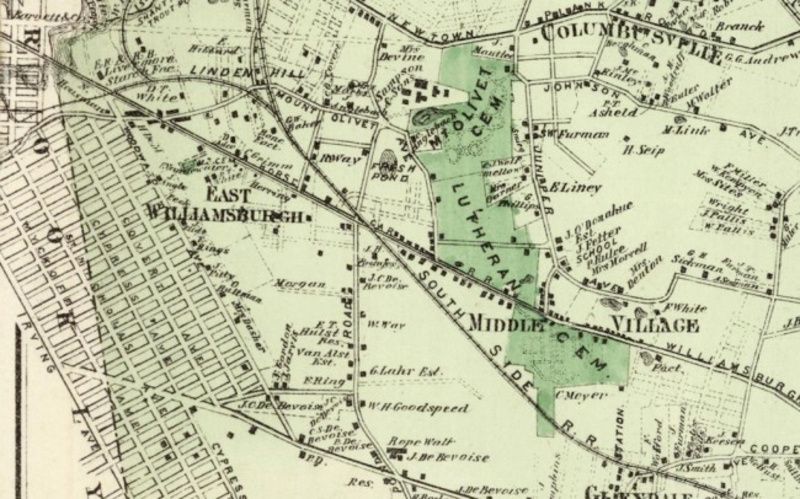 Finally, in 1768 a bill was passed for a commission to draw an official line between the two townships, and the next year, the borderline was measured from a huge rock called “Arbitration Rock” (remember, these were the days of natural boundaries). It wasn’t until 1880 that New York State sent surveyors to confirm the point on the rock it was measured from. Because Newtown was in Queens County and Bushwick was in Kings County, Arbitration Rock also became the boundary between these colonial counties in addition to the towns themselves.
