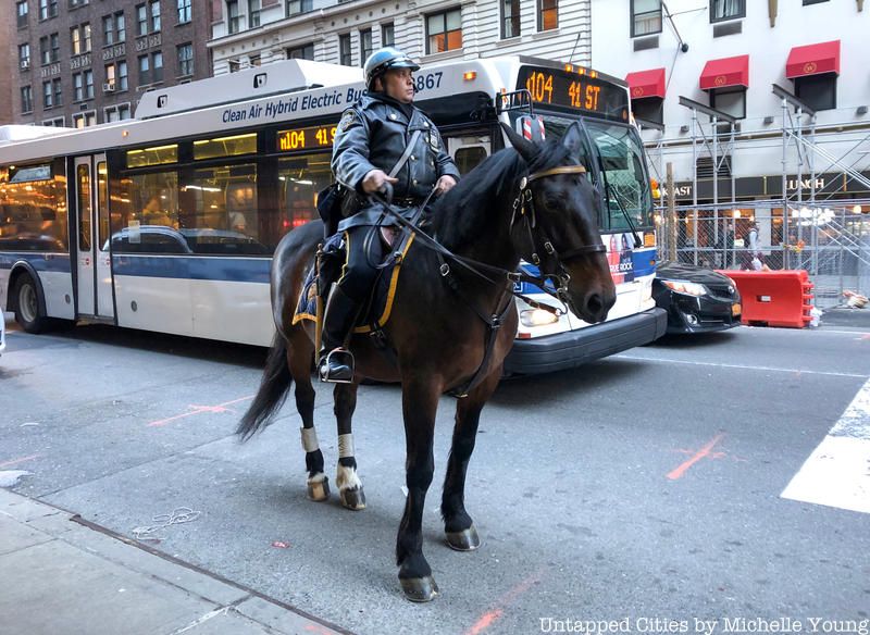 The aim of New York’s Mounted Unit is defined by five pillars: traffic control, crowd control, counter-terrorism, prevention of street crime, and community relations. That said, the main advantage of a mounted officer compared to a standing one is visibility. The added height supplied by the horses provides officers with a much wider range of vision, and in turn, easier recognition to those in need of help. Mounted officers are able to spot crime at far distances, and civilians are able to spot mounted officers at far distances as well.