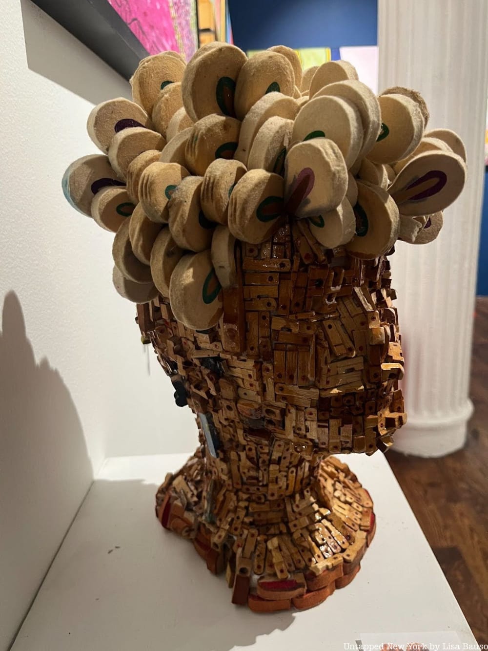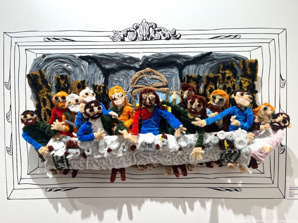 Studios for artists with intellectual/developmental/physical challenges like North Pole in Portland, Oregon, Shelter in New York City, and Sage in Austin are just a few of the progressive art studios represented with major finds to be discovered. Check out the pipe cleaner Last Supper or tiny reproductions of famous artists ($75.00 ea) by Montrel Beverly, who will be in person at the Sage stall on Saturday. Fountain House stall artist Max Reith has a few gorgeous paintings with a style and color pallette reminiscent of Van Gogh.