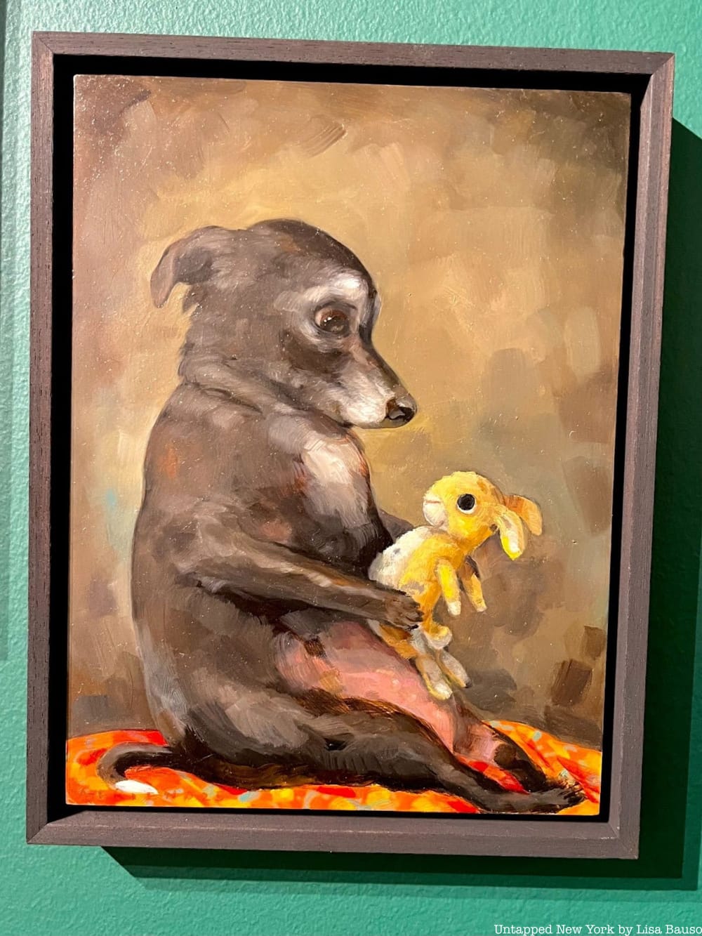 There are some fun, quirky, and unusual galleries like Nexus Singularity and a duo of charming exhibitions at Harmon Projects, including typewriter guns by Ravi Zupa and pet portraits by Alison Friend. Friend will be in-person at the booth from 6 pm to 8 pm on Friday.