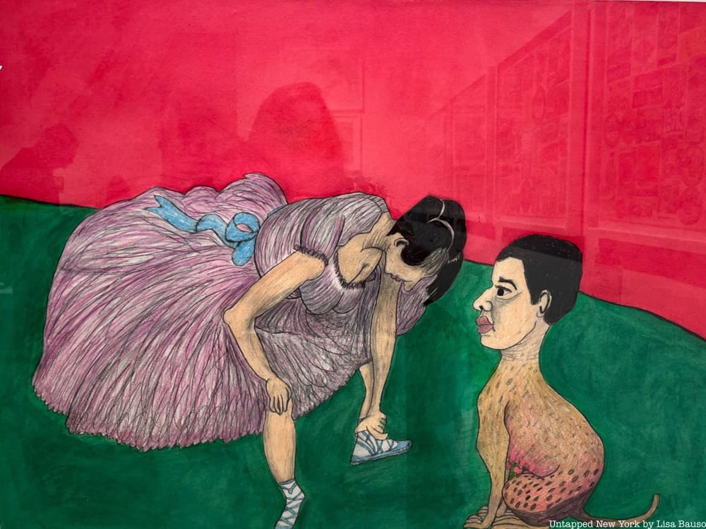 There is also a fair share of new and never-before-seen artists and galleries. Look for the woven purses made by incarcerated men from cigarette packaging before smoking was banned in prisons at the Cell Solace booth. Look closely at Bravin Lee artist Robert Forman’s works, which use thin thread glued to an oversized canvas to create wildly frenetic narrative compositions. DieFirma Gallery artist Bill Miller makes intricate collages from pre-1960 linoleum he scavenges from old demo sites.