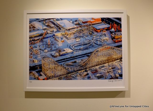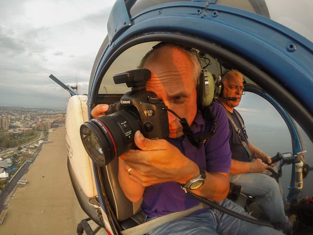 George Steinmetz taking aerial photos of Coney Island from a helicopter on Labor Day weekend. Photo courtesy Anastasia Photo Gallery.