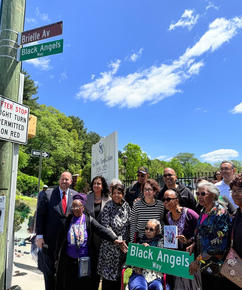 The intersection of Brielle Avenue and Sea View Hospital Historic District in Staten Island is now also known as Black Angels Way. This new street name honors the long-overlooked black nurses who risked their own lives to care for tuberculosis patients at Staten Island’s Sea View Hospital in the first half of the 20th century, before an effective treatment for TB was developed. The last surviving Black Angels, Virginia Allen and Curlene Bennett Jennings, attended the street naming ceremony on May 10th alongside many descendants of fellow nurses.