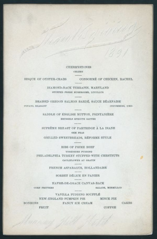 As early as 1879, companies and organizations such as the Brooklyn Daily Eagle began taking off work on Thanksgiving. Thanksgiving dinners in New York also did not always feature turkey with stuffing; “diamond back terrapin,” or turtle, was a popular option at restaurants across the city, as well as many seafood dishes like oysters and clams.