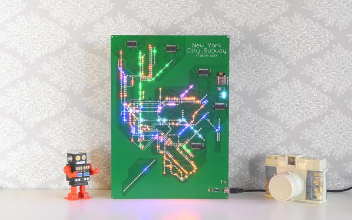 Transit nerds will love this hi-tech NYC themed gift. Traintrackr uses live data received over WiFi to show the movement of MTA subway cars. The New York City subway map and train movements are displayed on a printed circuit board dotted with 599 red, green, blue, orange, yellow, white, and purple LEDs. The board shows all 1, 2, 3, 4, 5, 6, 7, A, B, C, D, E, F, G, J, L, M, N, Q, R, W, Z and shuttle lines! Traintrackr has made PCB maps of transit systems all over the world, from the Boston MBTA to the London Underground. Get it here!