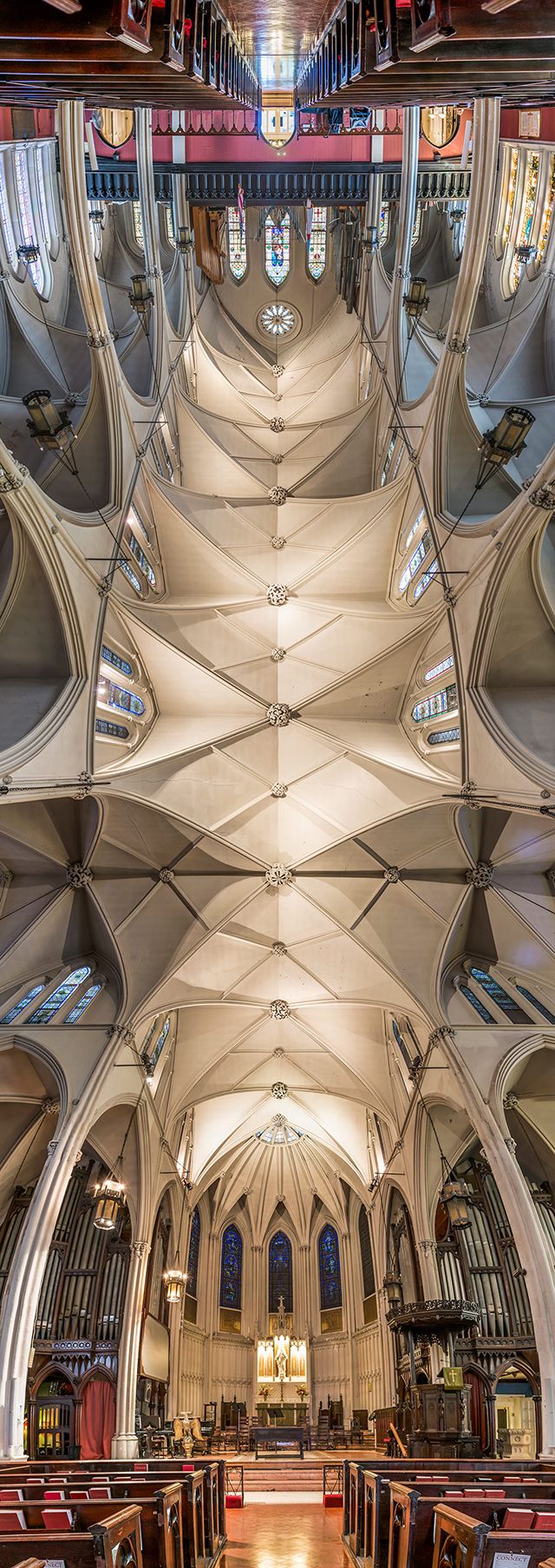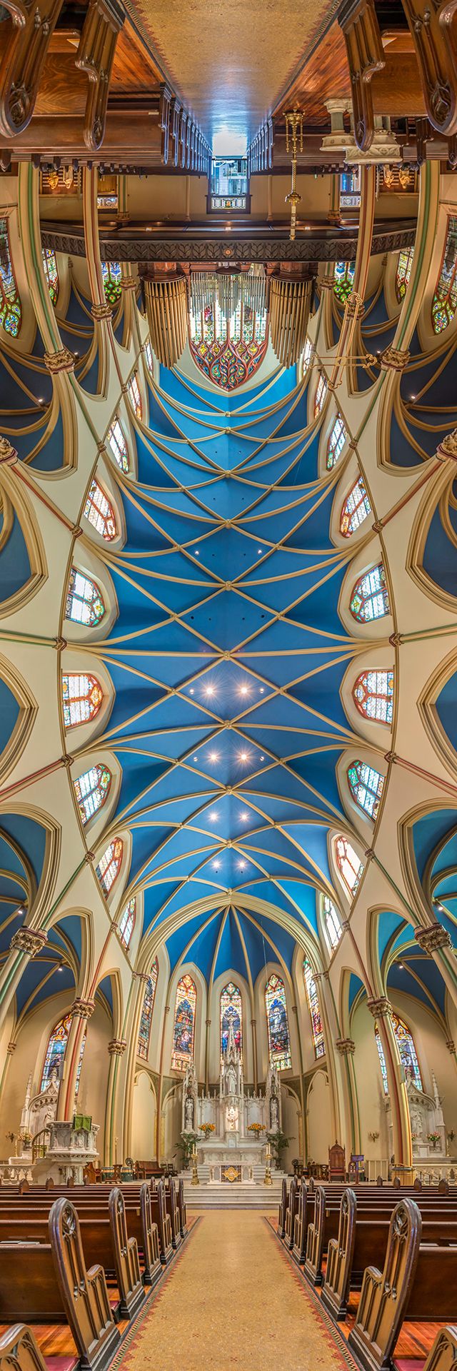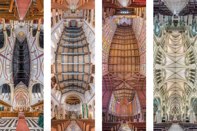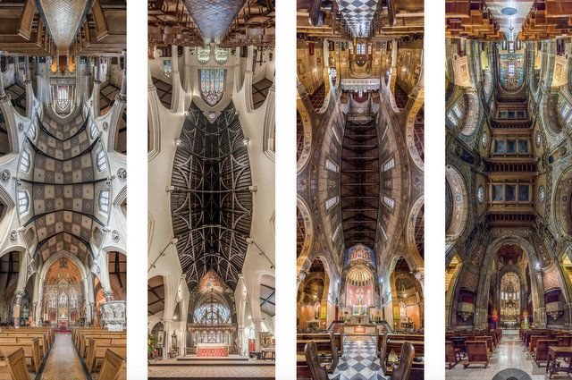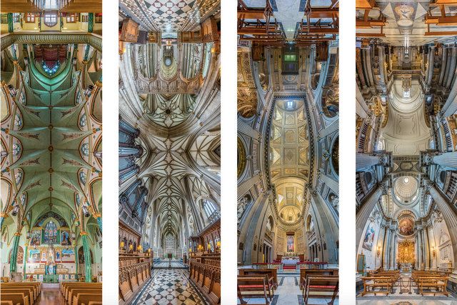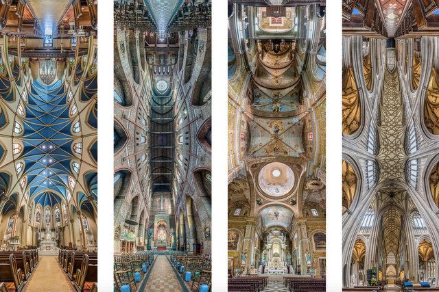 method, as he explains to Colossal, is “finding the perfect location in the center aisle, then shooting vertically from the pew to the back of the church [to give] the perspective that only architecture of this style can portray.” Each image is actually a compilation of roughly 6 to 10 shots.