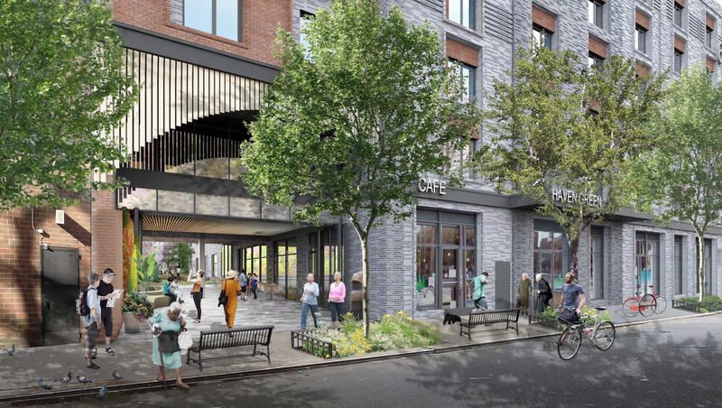 The proposed building, to be called Haven Green, will be designed by Curtis + Ginsberg Architects, and developed by Penrose Development, LLC, working with Habitat for Humanity New York City (Habitat NYC) and RiseBoro Community Partnerships, Inc. When completed, it will offer 121 affordable apartments for seniors (including 37 units set aside for the formerly homeless), as well as a publicly accessible, 7,600-square-feet garden with lawns, open seating and gardening areas. According to CurbedNY, the city is allowing nearby residents to decide how this new garden will be designed.