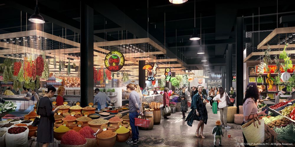 Rendering of The Market Line, the underground marketplace inside Essex Crossing. Image via SHoP Architects