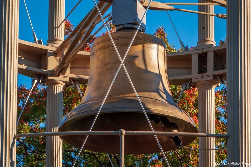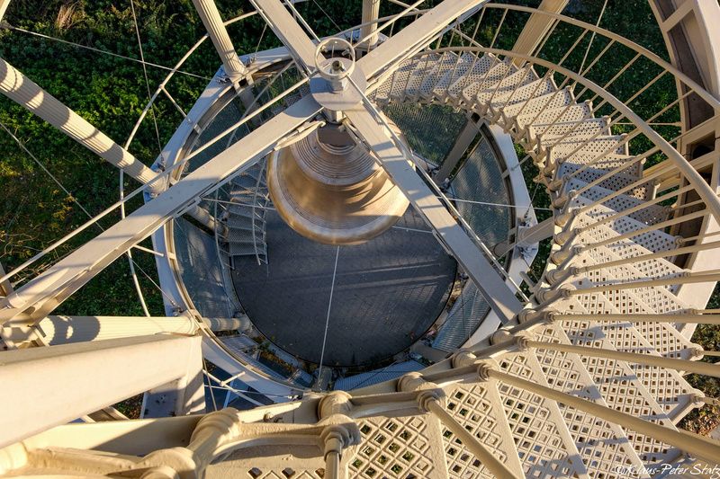 On the way up, we passed the tower’s 5,000-pound bell. While not the original, it is from the time the tower was in use. The original bell by Jones & Hitchcock in Troy, New York was damaged, possibly by improper striking or manufacturing flaws. At first, the watchman rang the bell by pulling a lever on the observation deck above. The bell that hangs today was cast by E.A. & G.R. Meneeley, also of West Troy, NY, and cast in 1865.