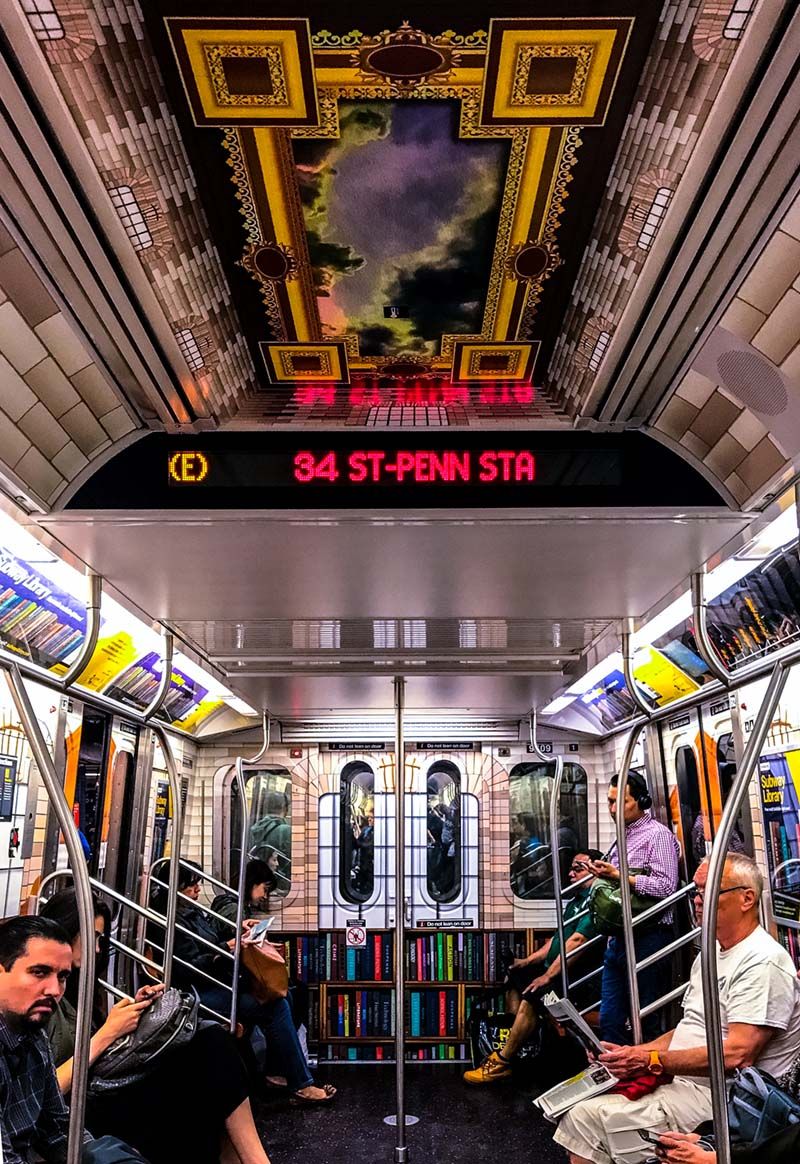 To celebrate the launch of the project, a subway train has been decked out to look like the inside of the New York Public Library’s Rose Main Reading Room. You can find it running along the 6 Avenue and 8 Avenue corridor lines on the E and F trains.