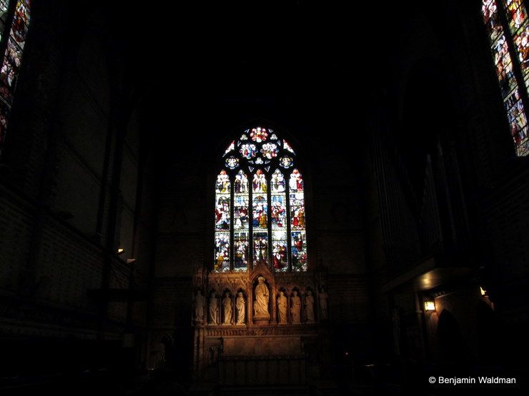 Its magnificent stained glass windows depicting Old and New Testament scenes: