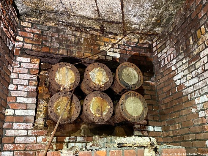 The inaugural episode of The Untapped New York Podcast was a dive into my favorite subject of all time: New York City’s pneumatic tube mail system. One of the highlights of this exploration was getting to see what I call the “holy grail” of pneumatic tube mail remnants: the six pneumatic tube flanges coming out of the wall in the basement of the Old Chelsea Post Office. They are the last known remnants of the pneumatic tube mail system in New York City.