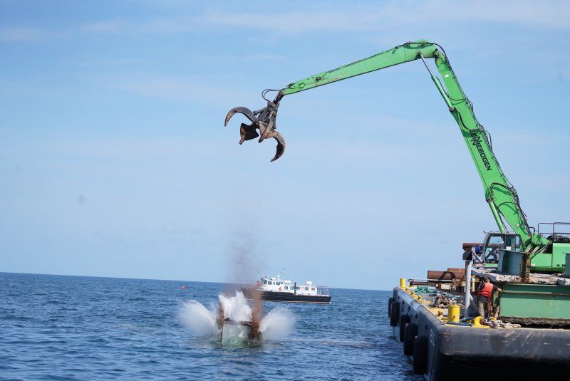 This deployment contributes to Governor Cuomo’s Artificial Reef Initiative, New York’s first ever comprehensive program to construct artificial reefs, announced in April of 2018. The unprecedented effort is deploying large amounts of recycled materials cleaned of contaminants from the State Department of Transportation, the New York State Thruway Authority and other partners. Over time, these recycled structures will create a habitat similar to a natural reef. This is a similar process to the repurposing of New York City subway cars as artificial reefs along the Eastern seaboard, a 10-year program by the MTA that has since concluded.