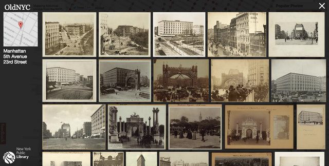 Click on one of the red dots and an array of photographs geolocated to that area will pop up–we’ve chosen Madison Square Park because we love those epic victory arches that stood as temporary monuments. Click on a photographs and details about the image pop up.