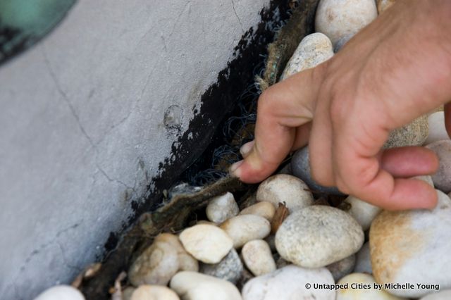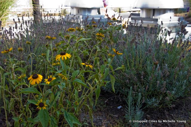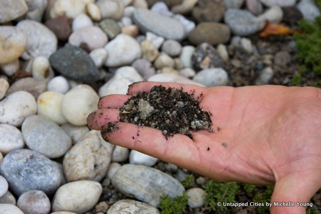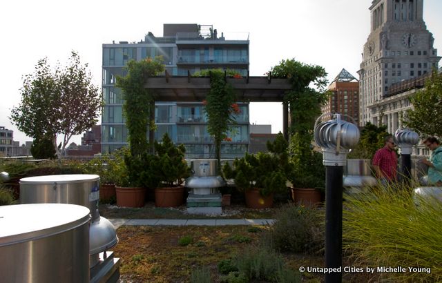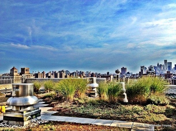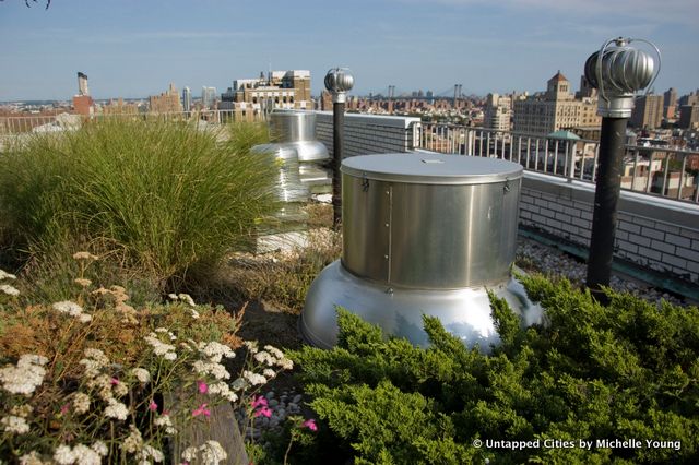 The standard benefits of a green roof, including reduction of building temperature and reflection of the sun’s rays, are very similar to that of the °CoolRoofs Untapped New York explored previously. With the addition of organic plantings, oxygen is created. In contrast to white roofs, green roofs can use the rainfall through evapotranspiration and help divert rainwater from entering New York City’s combined sewer overflows (CSOs) which pollute the waterways during storms. Stormwater management is a major focus on the City’s PlaNYC 2030 sustainable goals. Christian explained that this roof can soak up the first hour of a typical rainfall, which can remove thousands of gallons of water from our sewers. The roof can also slow the entry of water into the city’s sewers, allowing for it to miss peak times when the most damage can be done.