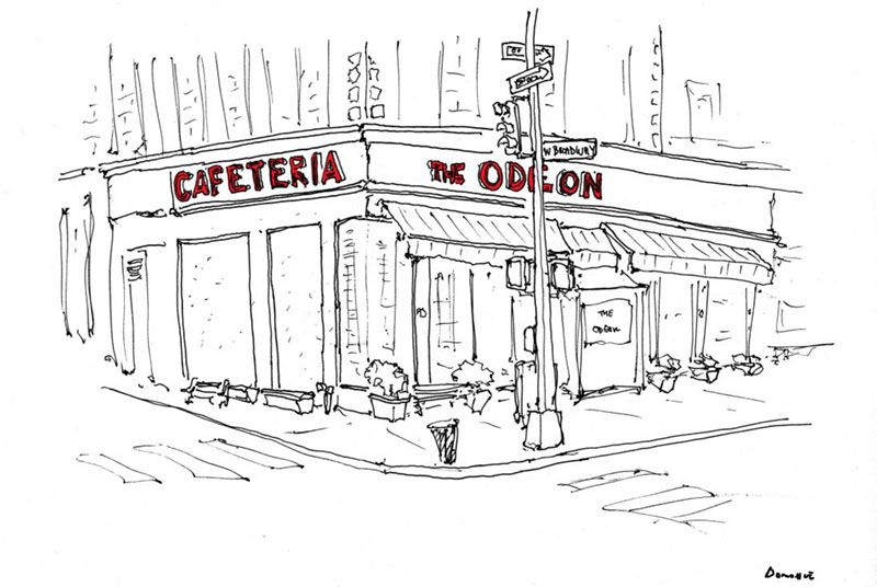 Because he wanted to focus on the “food-media space,” Donohue eventually left his job at The New Yorker and launched All the Restaurants in New York on January 1, 2017, beginning with his drawing of The Odeon. “I decided to do all the restaurants in New York because I want to draw forever and I wanted a subject that could not be exhausted,” Donohue tells us.