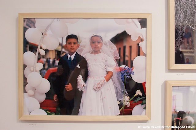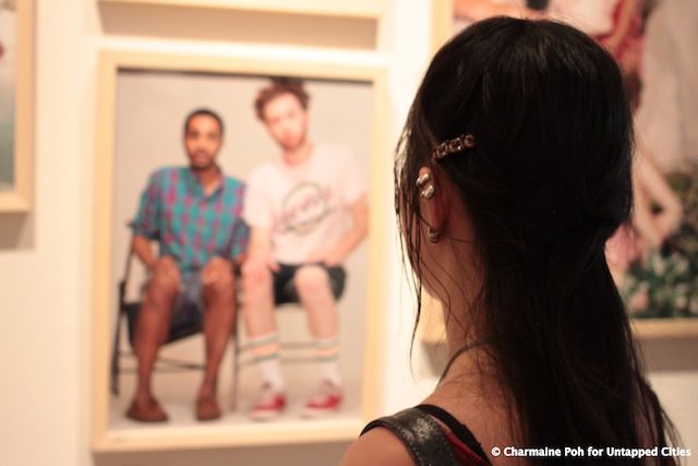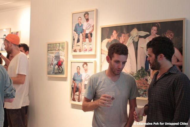 VICE, our favorite source for edgy and downright weird art, opened their 2012 Photo Show last night to much fanfare from the Williamsburg crowd. The crowd seemed to be gathering before the doors even opened to the public, and they just kept coming. The show was a compendium of the best of the strange: diptychs of dolls and people dressed up like them by Annie Collinge, child brides and grooms by Kevin Kunishi, a black guy and a white guy who change skin color thanks to photoshop by Mike de Leon, and a self portrait as Yoda by Jaimie Warren. Here are our photos from the opening.