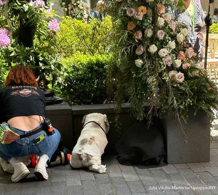 And for those who are worried about whether the adorable bulldog, Winnie, who was the ring-bearer, was safe in the bright afternoon sun, never fear. They used a mock-up, which looked startlingly real, when the temperature soared.