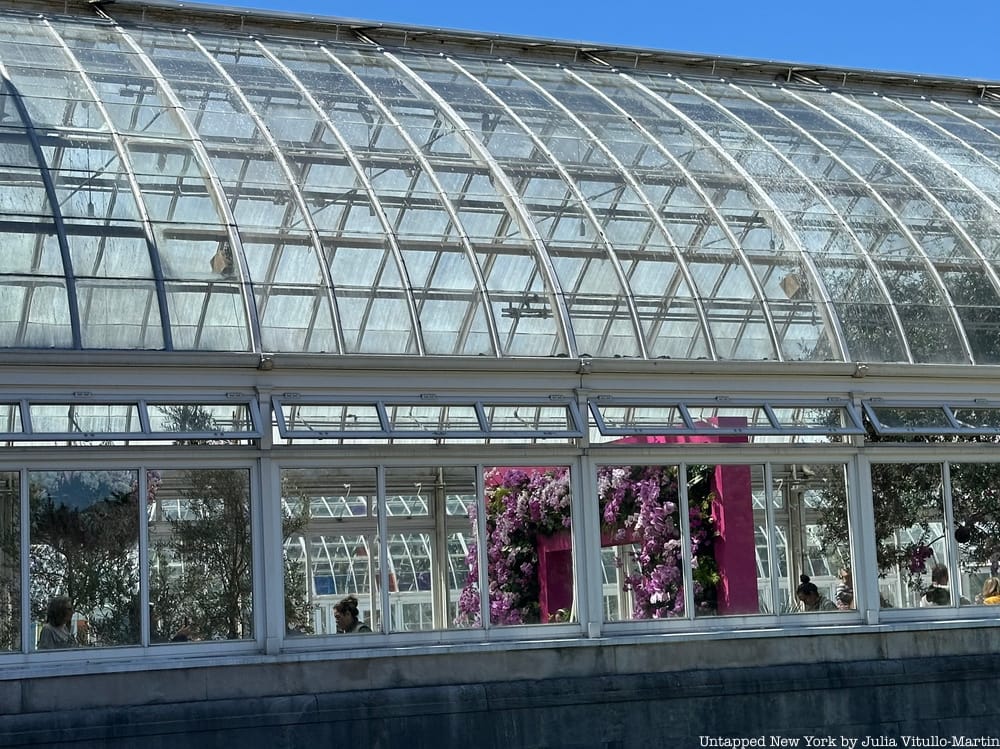 As visitors walk through the many rooms of the exhibit, they repeatedly encounter the magnificence of the Haupt Conservatory both inside and out. Orchids thrive within, and the NYBG's glorious planted trees can be seen bursting into bloom through the glass windows.
