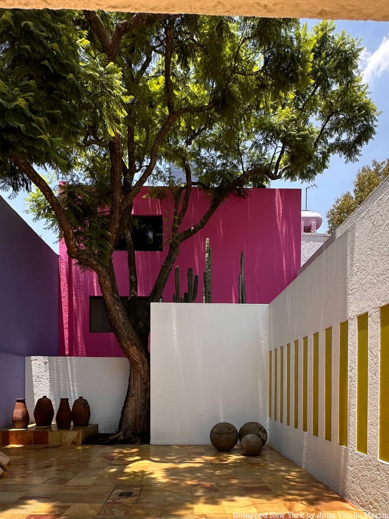 NYBG has chosen a Barragán masterpiece, Gilardi House in Mexico City, as inspiration for the orchid showcase. I toured the house with Fluenz, a Spanish-immersion company that offers tours of the home conducted by the current owner, Eduardo Luque. Luque has maintained it meticulously. Eduardo's father, Martín Luque, an advertising executive, had agreed in 1975 to let Barragán design the house around an existing jacaranda tree. Fifty years later, the tree continues to thrive in Mexico City, while a replica serves as a star of the exhibit in the Bronx.