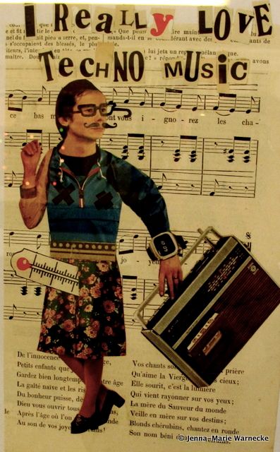 Madame Moustache is a Paris street artist whose work has popped up on walls all over the city, mostly in the hip neighborhoods of the 11th, 18th and 20th arrondissements. Madame Moustache creates her detailed and busy collages from objects, images and words culled from magazines from the ’60s and ’70s and whips them into cool, interesting and (most of all) funny works of art that give a wink to our notions of gender, power and relationships.