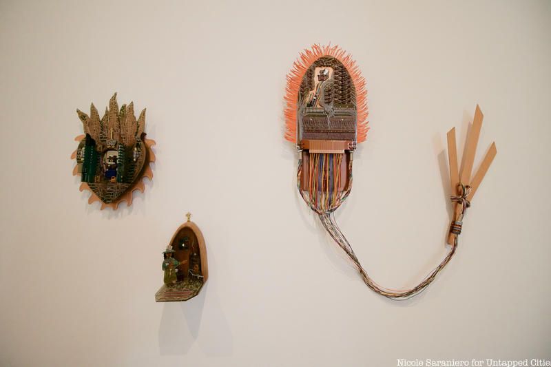 Running alongside Mundos Alternos is an exhibit by Alexandria Smith, Monuments to an Effigy. This exhibit features historical artifacts and original artwork by Smith arranged to evoke an altar or commemorative space to imagine and respond to the stories of the African Americans and Native Americans who were interred at The Olde Towne of Flushing Burial Ground from the late 19th century through the 1930s. Both exhibits will be on view until August 18th, 2019.