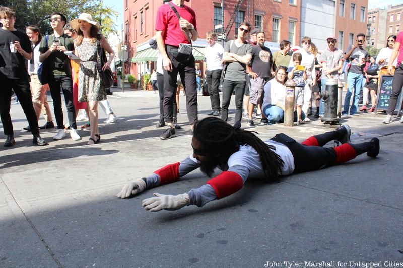 This weekend, a group of nearly 200 people will be crawling through the streets of West Village, Greenwich Village and Union Square. The parade of peoplewill literally be crawling on hands and knees in a relay along the 1.5 mile route. The large scale performance is artist Pope.L’s largest and most ambitious project yet.